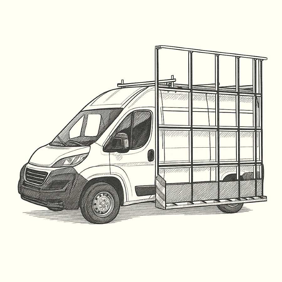 Glass rack type 5, designed from aluminium, ensures stability and practical use. Essential for glaziers who demand maximum safety when transporting glass.