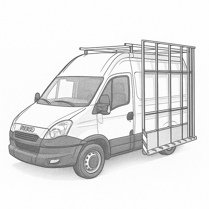 A practical safety measure when unloading glass. The bars can be placed in a solid metal arc so that they do not fall and damage the glass.